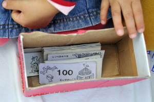 おさいふからお小遣いを出して買い物です。 |