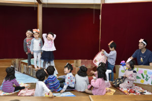 先生たちが、「うんとこしょドッコイショ」と「大きなかぶ」の劇を見せてくれました。 |