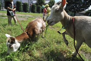 やぎ当番の子どもたち(年長組) が外に連れ出してくれるのを今や遅しと待っていました。 |