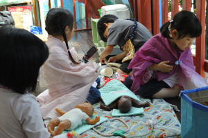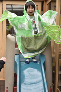 先生たちが作った木製の移動できるパーテーションが、「お家ごっこ」の場所になります。 |
