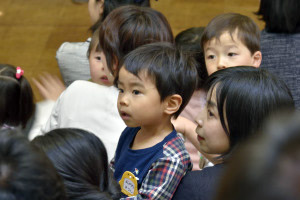 年少さんが飛び入りで見学です。来年は食べられますよ。[追記]後でひとかけらずつ年長さんが配ってくれたそうです。