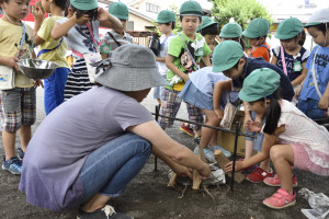 おしまいは火を消す体験です。水をかけると湯気と灰が舞い上がり直火体験は終わりました。 |