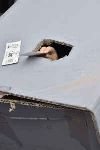その入園料や「お店」でものを買うときに必要なのが「あんずぎんこう」発行の三種類の「お金」です。子どもたちはお店の呼び込みで「お金はいりません」とか「お金はいります」などとよく叫んでいます。 |