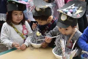 ごっこ遊びに必要なものは自分たちで作る年少組の子どもたち。 |