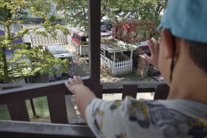 ほんの少し前までの賑わっていた「まち」が跡形もなく消え去り、いつもの電車の庭になりました。これから毎日雨が降らなければ「まち」での遊びは続きます。 |