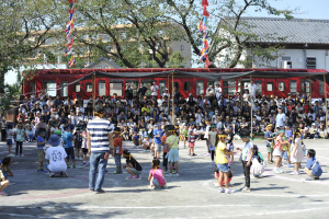 電車の庭のトラックを走りたいだけ走ります。その日走るかどうかは自由です。(年中組、年長組) |