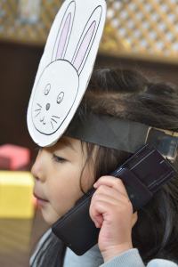ウサギをじっと見ていたくなりました。やりたいことが自由に出来るというのが基本です。(年少組) |