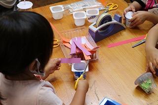 | シュノーケルも作りました。 | ひよこ1組さんがペットボトルのロケットを飛ばすみたいです。 |