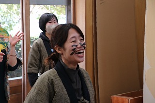 墨を塗られてもうれしそうな先生たちです。 |