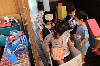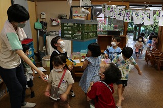 部屋の中でもお店屋さんが開店しました。(三歳児) |